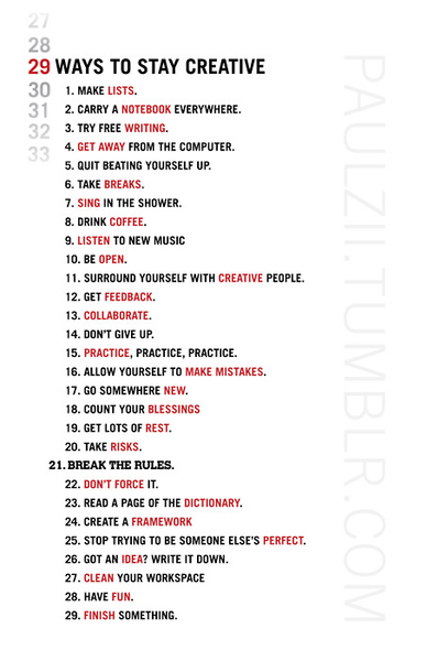 Great compilation, and daily reminder. I would probably add (and not just because I’m a Virgo)… “PURGE the old + stale + not-so-nice remembrances, in order to make room for the new + invigorating + onslaught of good memories!”
