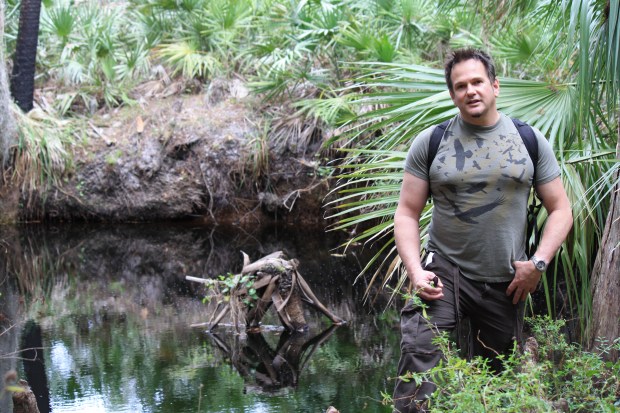 It was a perfect day for such an exploration — overcast. Four hours of hiking Jonathan Dickinson’s terrain, and one is thankful for cloudy skies (or at least my Irish skin always is). After passing stately rows of centuries-old cypress and live oak along the Loxahatchee River (into which the Kitching Creek flows), we headed into the lovely cypress swamps — always my favorite — before breaking out once again into the open pine flatwoods. We only saw one other backpacker on his way to the primitive campsite, in the late afternoon — outside of the family of feral pigs (wild hogs) and myriad birds (we tried looking for the maniacal owl), that is. We’ll definitely be returning to complete the hike, and soon.