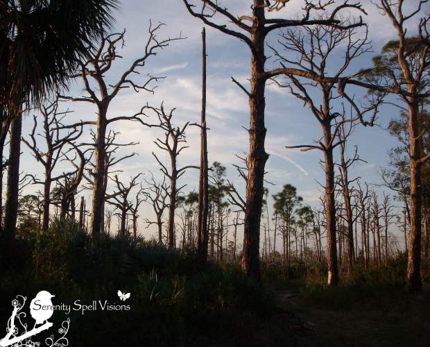 Scorched — but not necessarily dead — slash pines are profiled against their more lively brethren at various natural areas and parks. Their tenacity is ever-inspiring and a not-so-gentle reminder, as they continue to stand tall with new growth peeping amid burned limbs.