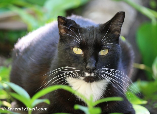 A resident kitty relaxes — and tries to hide — in the gardens of the Ancient Spanish Monastery