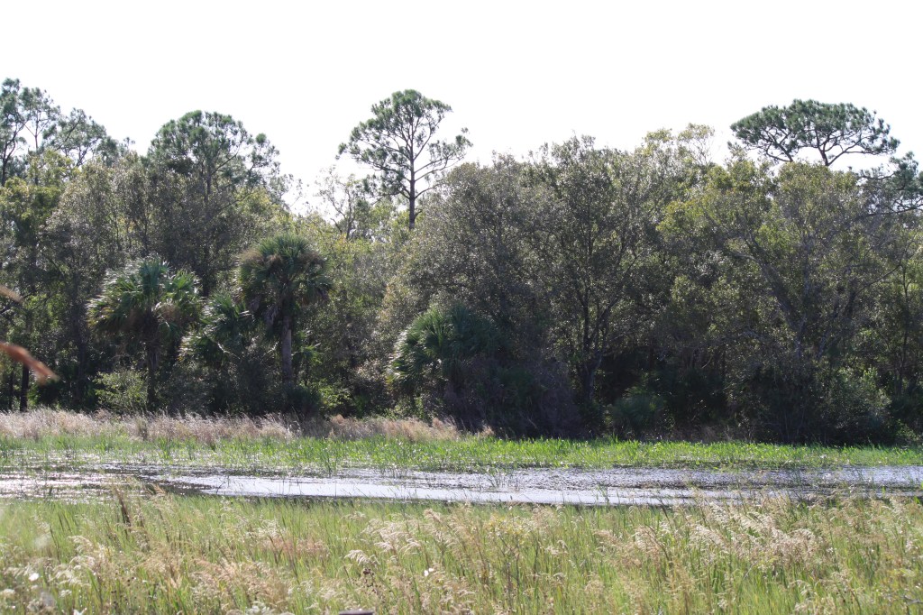 We investigated the Historic Jupiter-Indiantown Trail, a 16.5-multi-use trail. The trail is being built in phases, along a road that was used from 1900 into the late 1950s for travel between Jupiter and Indiantown. We pursued the hiking-only portion, a very nice, natural backcountry Florida hike, once you really got out there. It offers access into three conservation lands and facilities, each of which is subjected to its own rules: Riverbend Park, Cypress Creek Natural Area, and Jones Hungryland Wildlife and Environmental Area. On this trail, it was important to have snacks and water (we were out there for several hours, but you can easily make it as short a trip as you wish). Portions of the trail were flooded, due to earlier rains, but they weren’t impassable. We wandered through native Florida ecosystems including wetlands, flatwoods, marsh, swamp, and prairie.