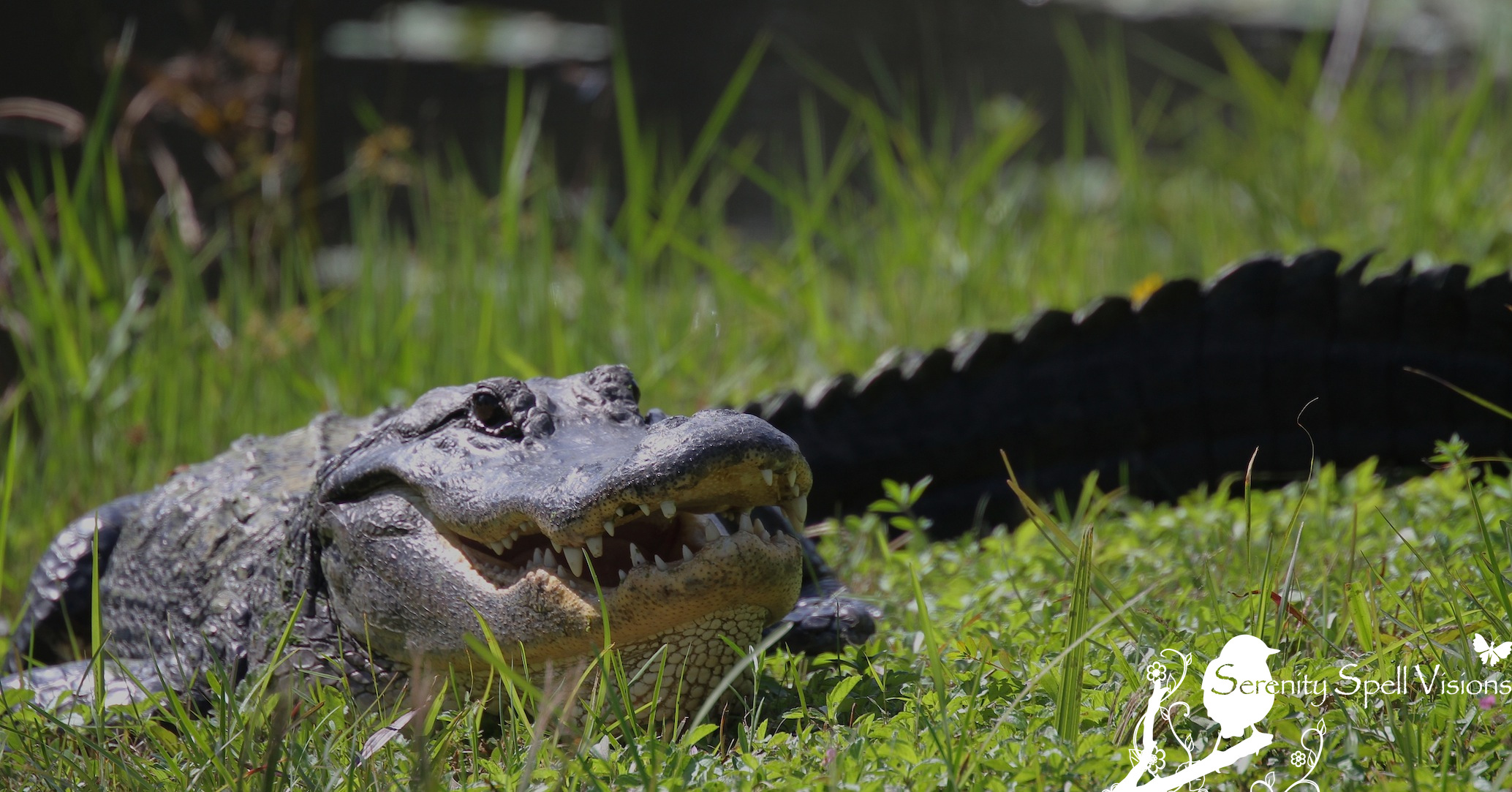 He’s not hissing, or being hostile — far from it, he was as mellow as could be. As with other cold-blooded reptiles, he was basking in the sun, regulating his body temperature. Occasionally alligators will keep their mouths open, akin to a dog panting…. It’s a cooling mechanism.