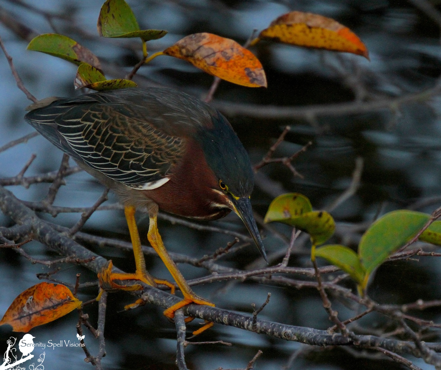 During a quick visit to the wetlands between the raindrops, it was obvious that there was much repair to the nests being done throughout the preserve. As I was blankly staring at a turtle (I love our turtles), I caught some commotion deep within a Pond apple tree, one that’s been an annual home to nesting Green herons. Mom had just returned with branches to repair the nest, and her little ones were obviously expecting food — and visibly unhappy about the sticks over the food.